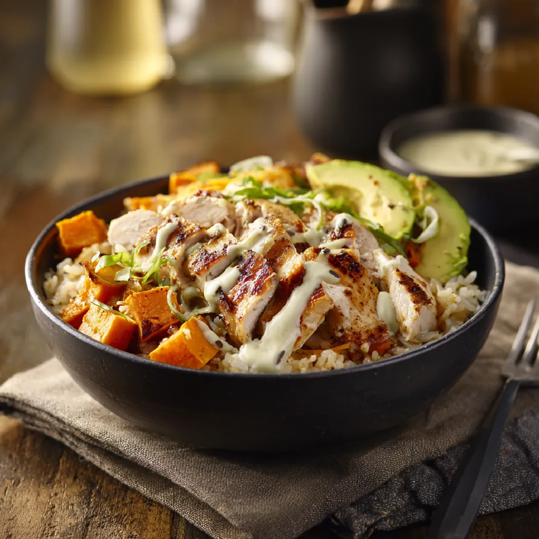 9. Serve warm and enjoy your Sweet Potato Chicken Rice Bowl!