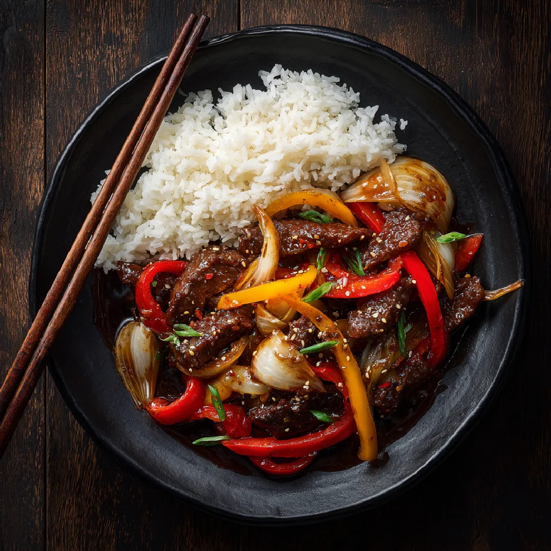 Juicy beef strips, sweet onions, and colorful peppers in a savory soy-based sauce. A quick, homemade takeout favorite ready in under 30 minutes.