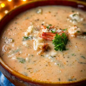 A creamy and rich soup that combines the flavors of crab and shrimp, making it a favorite for seafood lovers. Perfect for cozy dinners or special gatherings.