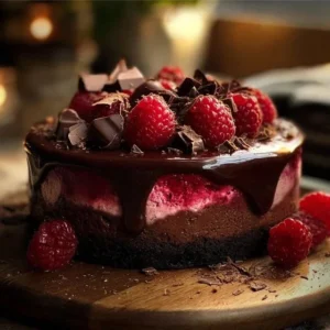 Indulge in Decadent Dark Chocolate Raspberry Cheesecake