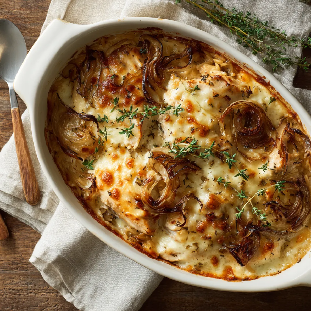 If you’re already a fan of recipes like Lemon Chicken Orzo Soup, you’ll appreciate how this bake takes those flavors and transforms them into pure comfort food. Each bite balances the sweetness of slow-cooked onions with the saltiness of melted Gruyère, while juicy chicken ties it all together.